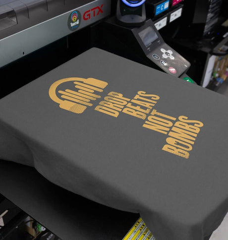 Drop Beats Not Bombs Sound Shirts Logo In Yellow A3 Print