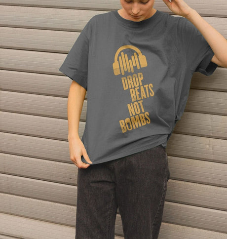 Drop Beats Not Bombs Sound Shirts Yellow Logo Relaxed Fit Womens T-Shirt