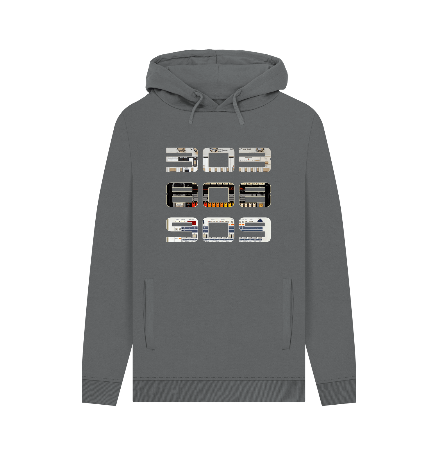An update to this design, but with our own twist. If you're a fan of the TB-303 Bassline and TB-808 and TB-909 drum machines by Roland... and let's face it... who isn't? - then you'll love this. Featured here on our high quality, UK sourced, sustainable cotton pullover hoodie in a range of colours.