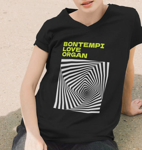 Bontempi Love Organ Green & Black Graphic Womens V-Neck T-Shirt