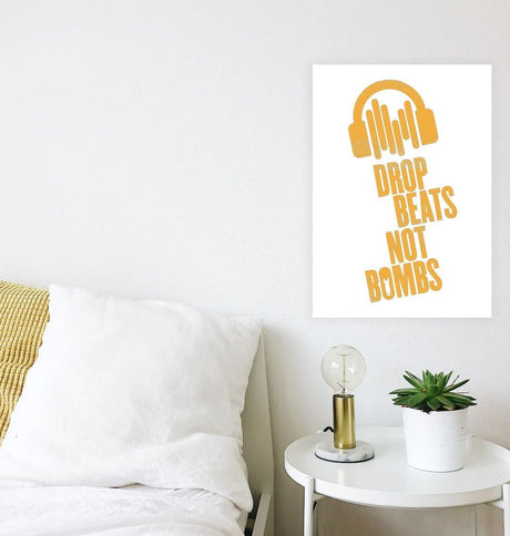 Drop Beats Not Bombs Sound Shirts Logo In Yellow A3 Print