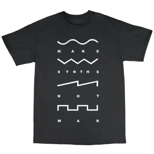 Rock out in our "Make Synths Not War" t-shirt. With a bold design and comfortable fit, this shirt is perfect for music lovers and pacifists alike. Spread the message of peace and harmony with this quirky and fun shirt. Get yours now and make a statement!