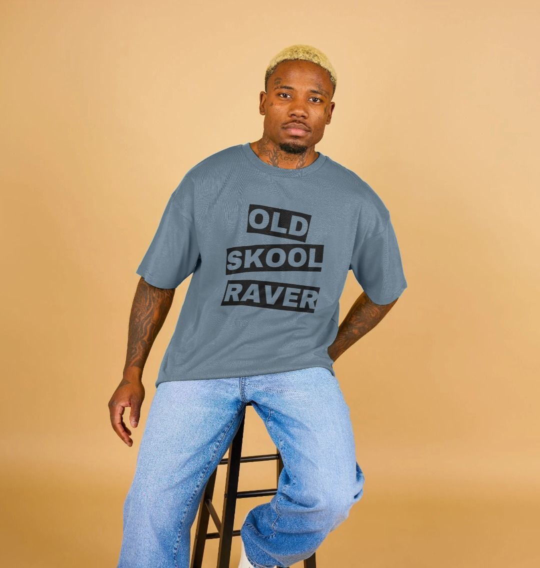 A statement slogan, on a statement style! This "old skool raver" t-shirt looks great sitting loud and proud on our oversize t-shirts. Available in a range of cool colours.